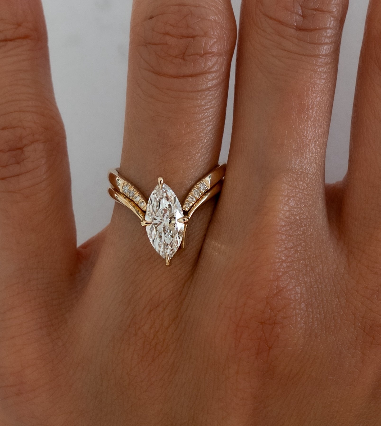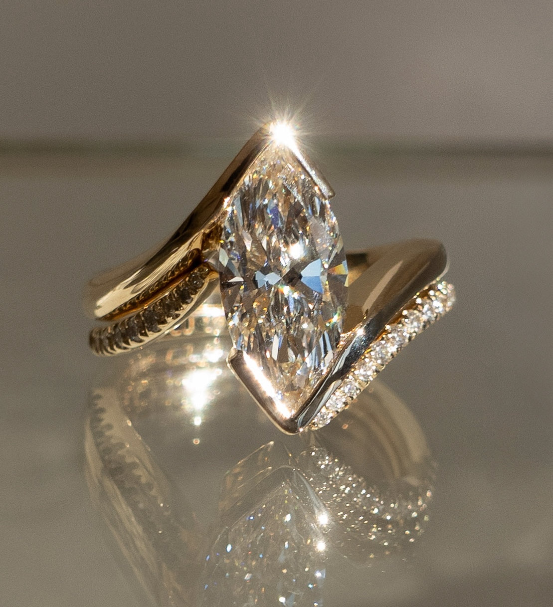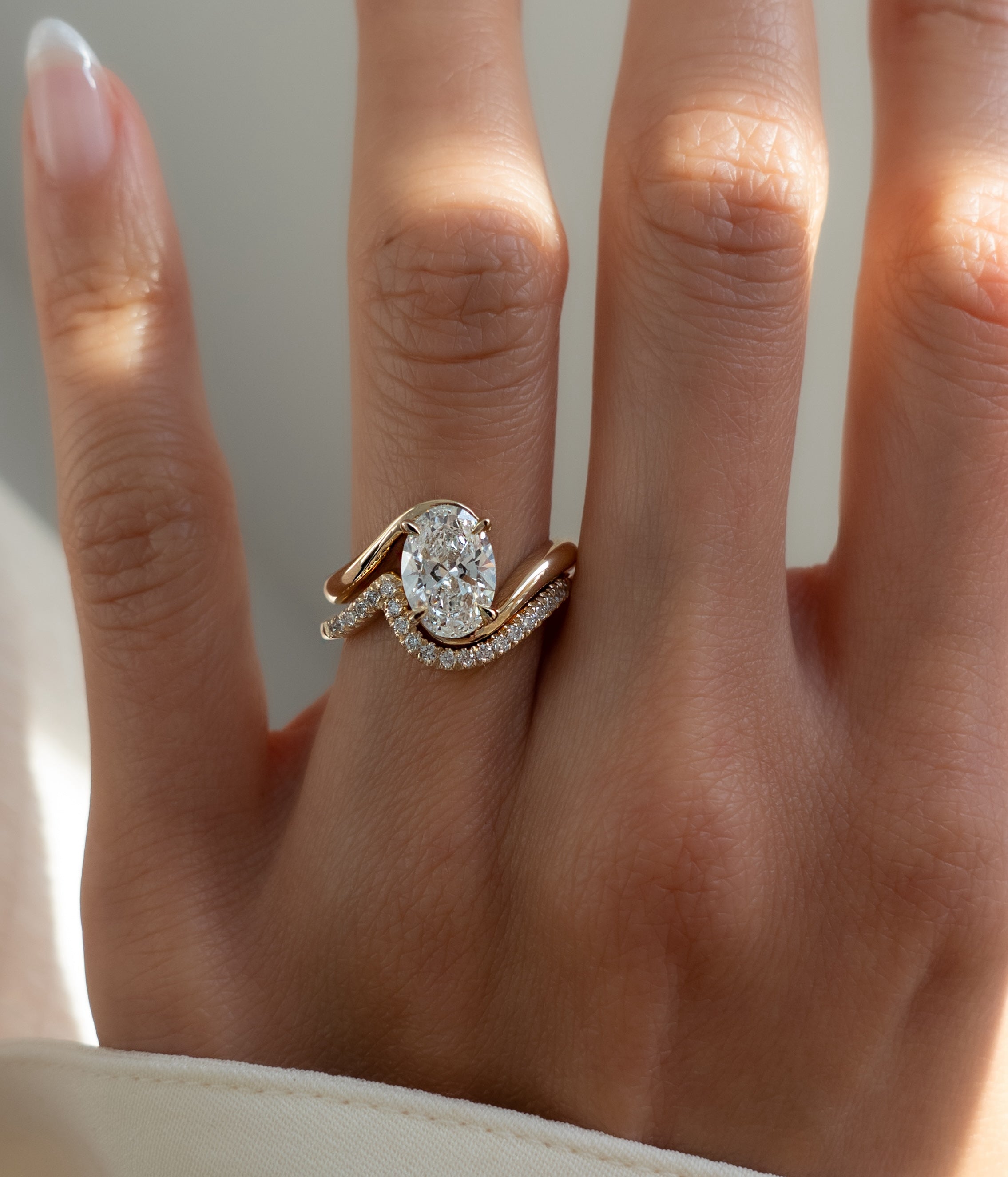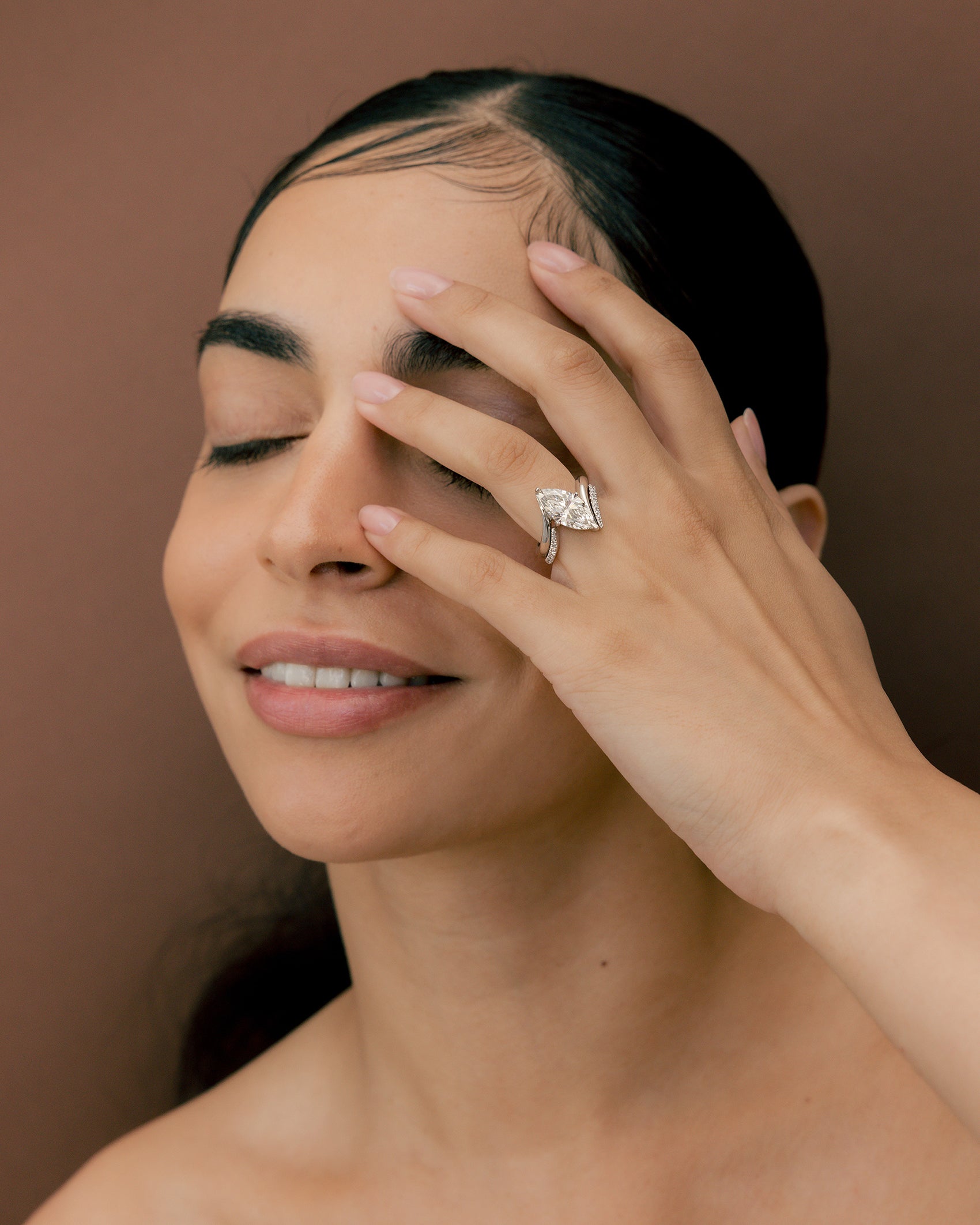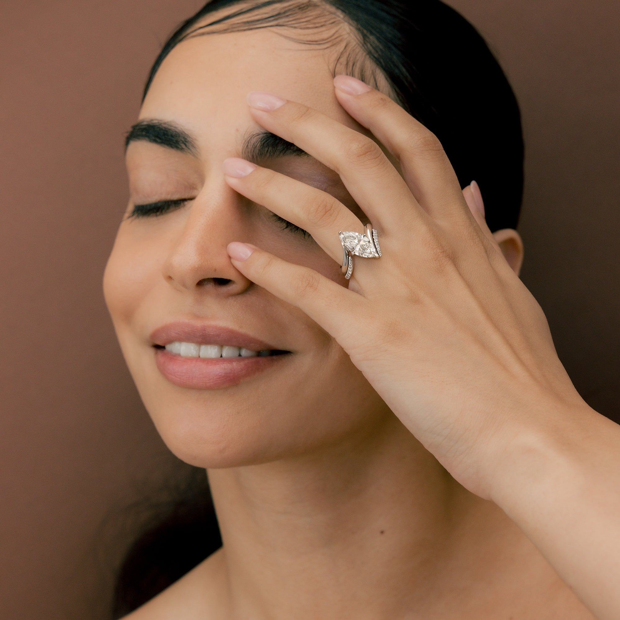 Designed with CADETTE’s signature artistry—fluid, asymmetrical, and timelessly bold. Choose your perfect setting: Half Bezel or Prong. Then complete your dream SET with one of our new perfectly stacking Bands: the Wrap Pavé or V Pavé.