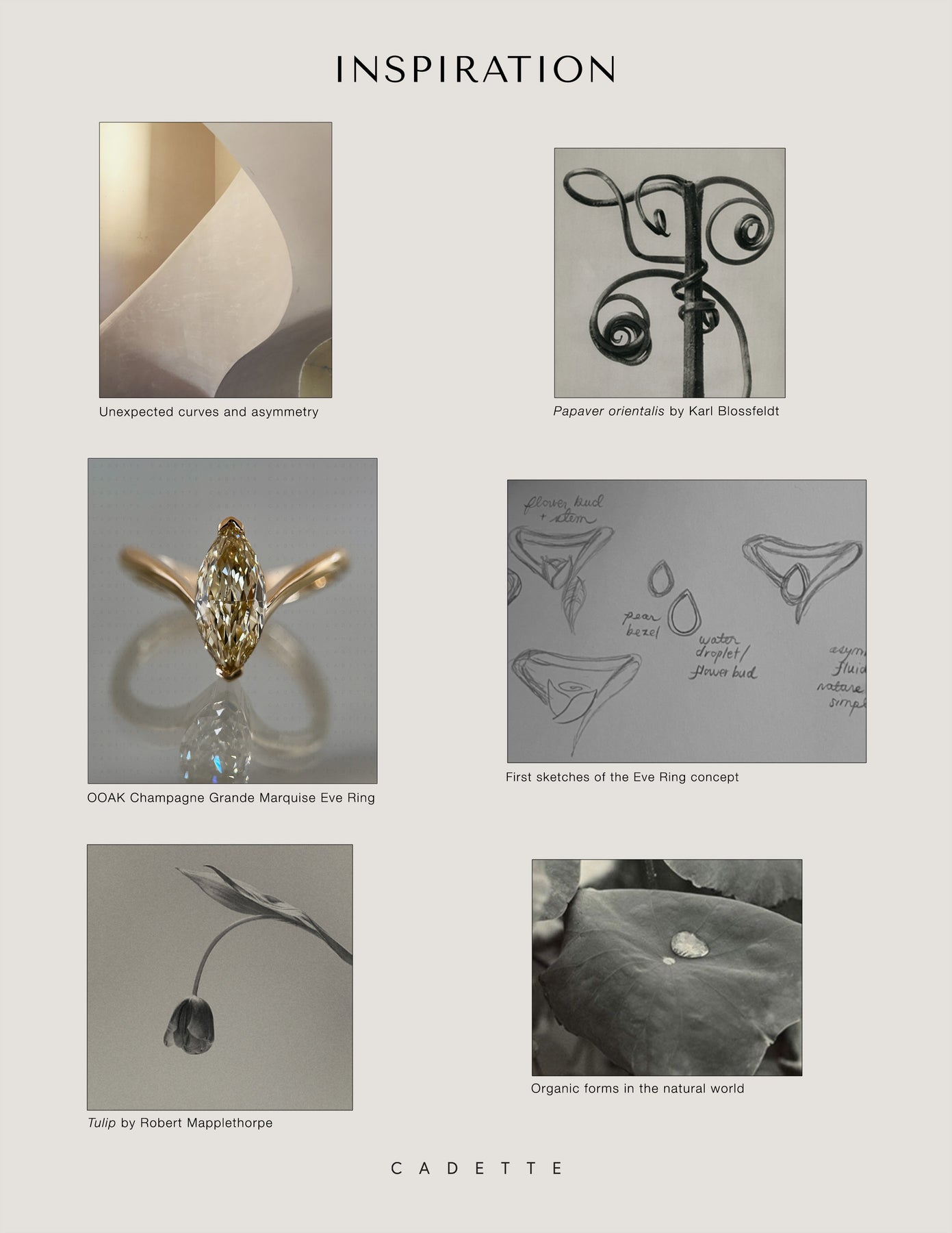 Set within our signature EVE silhouette, inspired by a flower in bloom, this design captures the essence of natural grace — modern yet timeless, minimal yet full of movement. A luminous homage to nature and an ode to ever-evolving love — for oneself or another.