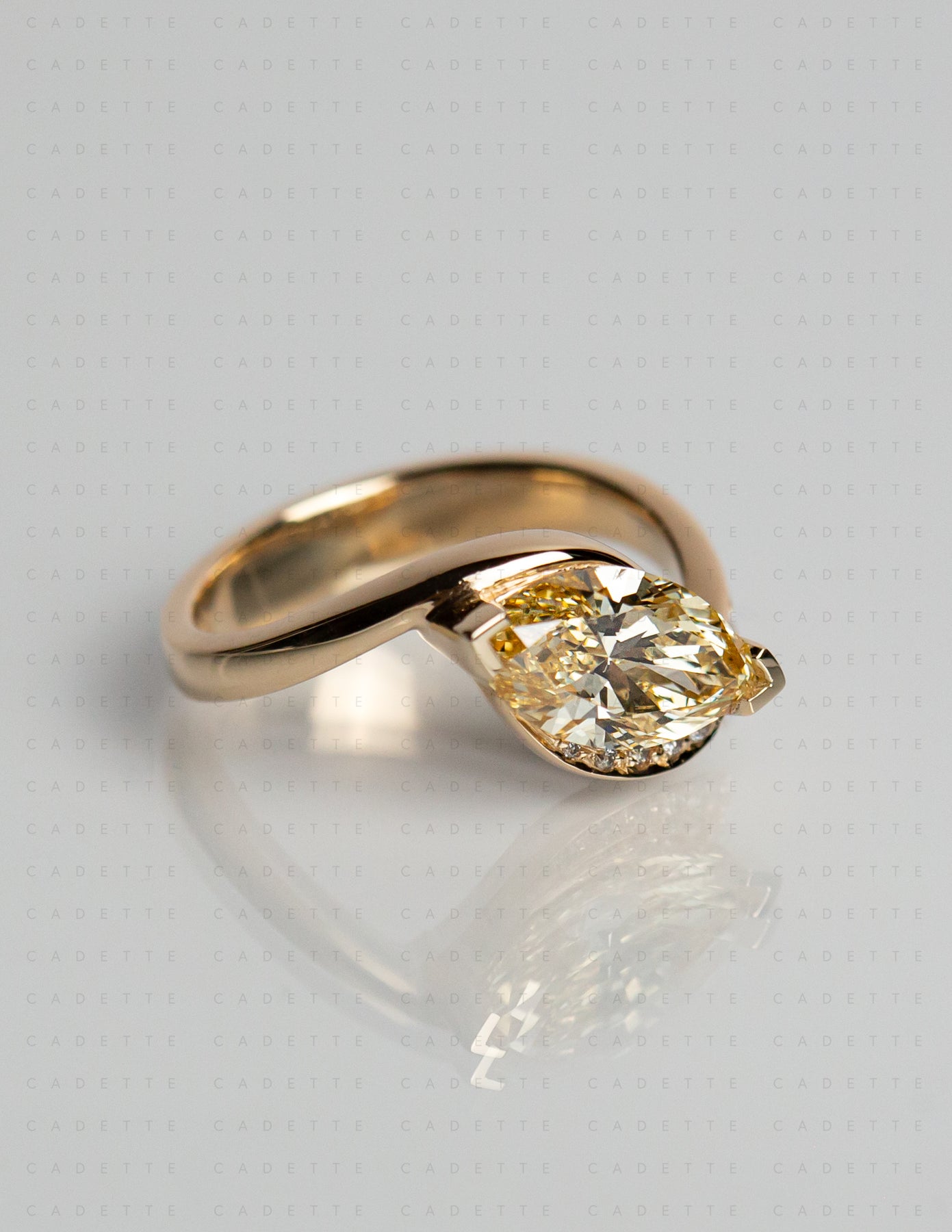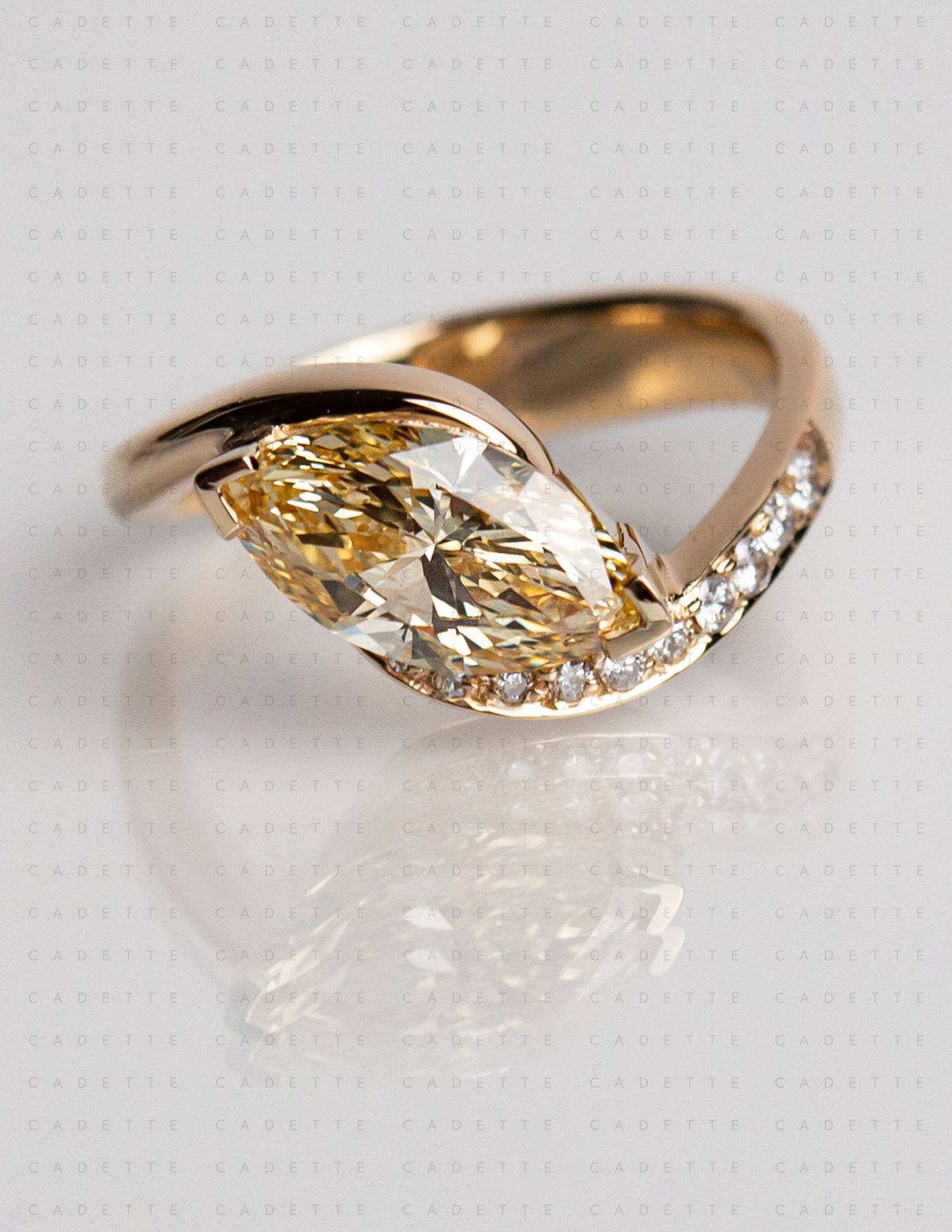One-of-a-kind — 1.92ct CHAMPAGNE-YELLOW Lab Grown Diamond Marquise Demi Pavé Rapture Ring