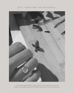 INSPIRATION: This signature Butterfly pendant was diligently hand-sculpted by Cadette founder, Allison, giving it a truly artisanal soul and spirit. It draws inspiration from meaningful and healing moments spent with Nature, and the innate understanding that we are connected to all living creatures.